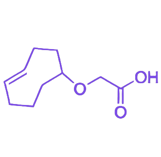 TCO-Acetic acid 是一种双功能生物偶联试剂,其分子结构同时包含反式环辛烯(TCO)基团和羧基(-COOH)活性官能团,可分别通过生物正交反应与化学偶联反应实现靶向连接与分子修饰,在生物医学研究及药物开发领域具有重要应用价值,且在低温干燥、避光条件下化学性质稳定。 反式环辛烯(TCO)基团作为核心功能单元,可与四嗪(Tetrazine)类化合物发生无需催化剂的快速生物正交反应,该反应在生理条件下即可高效进行,为活体生物分子标记、细胞表面修饰等前沿研究提供了精准的化学工具。 羧基(-COOH) 作为活性反应位点,在缩合剂(如1-乙基-3-(3-二甲基氨基丙基)碳二亚胺盐酸盐(EDC)与N-羟基琥珀酰亚胺(NHS)联用)作用下,能与含氨基的生物分子(如蛋白质、多肽、抗体等)发生酰胺化反应;在酯化试剂作用下则可与含羟基物质形成酯键,从而实现与各类生物分子或材料的共价偶联。 该试剂凭借其双功能结构设计,在抗体-药物偶联物(ADC)开发、生物材料表面功能化修饰、生物探针制备等领域展现出关键应用潜力,为生物分子的特异性标记与功能化修饰提供了灵活高效的解决方案。