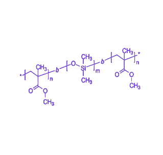Poly(methyl methacrylate)-b-poly(dimethylsiloxane)-b-poly(methyl methacrylate) (PMMA-b-PDMS-b-PMMA) 是一种通过分子设计实现刚性与柔性聚合物特性融合的ABA型三嵌段共聚物,以聚(二甲基硅氧烷)(PDMS)为中间软段、聚(甲基丙烯酸甲酯)(PMMA)为两侧硬段,形成"刚性-柔性-刚性"热塑性弹性体结构,兼具室温弹性与高温熔融加工性能,在生物医学、高端密封及特种塑料领域具有独特应用价值。