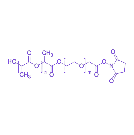 PDLLA-PEG-NHS 是一种通过化学修饰将聚D,L-丙交酯(PDLLA)、聚乙二醇(PEG)与N-羟基琥珀酰亚胺(NHS)活性酯共价连接的功能化生物可降解聚合物,兼具生物降解性、生物相容性及高效反应活性,适用于靶向药物递送、生物传感器构建及多功能生物材料开发。 材料主体由三种功能单元通过共价键整合:PDLLA赋予材料快速生物降解特性,可在生理环境中逐步分解为无害代谢产物;PEG链段显著改善材料亲水性,减少非特异性蛋白吸附并提升生物相容性;末端修饰的NHS活性酯可在温和条件下(pH 7-8)与含氨基(-NH₂)的生物分子(如蛋白质、抗体、多肽等)发生高效缩合反应,形成稳定的酰胺键,实现精准共价偶联。 该聚合物通过模块化分子设计,可根据应用需求调控PDLLA与PEG的链长比例,平衡降解速率与亲疏水平衡,其高效的生物分子偶联能力为构建靶向递送系统(如抗体-药物偶联物、靶向纳米载体)、高性能生物传感器(如免疫检测探针)及智能响应型生物材料提供了关键技术支撑,在生物医药领域展现出重要应用潜力。