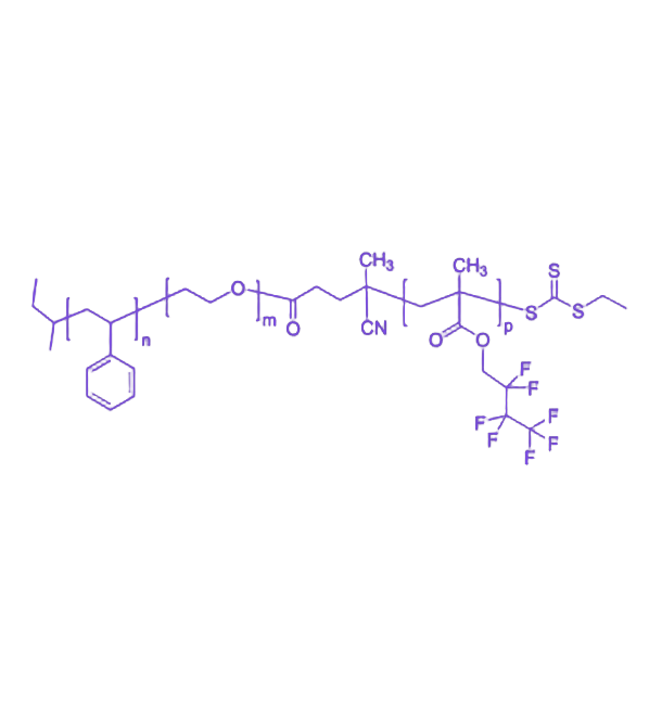 在固态薄膜或涂层体系中,PHFBMA 片段具有向表面迁移的固有趋势,可自发提升表面氟含量,从而降低表面能,使材料无需额外处理即可形成超疏水、抗油、抗污染界面。这种“自迁移”特性与 PS 提供的膜体强度、PEO 赋予的柔韧性相结合,使涂层在保持优异界面性能的同时兼具良好的机械性能与可加工性。凭借可控的自组装特性、高度可设计的多相结构、优异的界面性能及含氟链段带来的耐溶剂与耐化学性,PS-b-PEO-b-PHFBMA 已成为纳米材料、膜材料、抗污涂层、微流控界面、表面能调控及特殊润湿性设计等领域的重要功能材料平台,具有广阔的研究与应用前景。