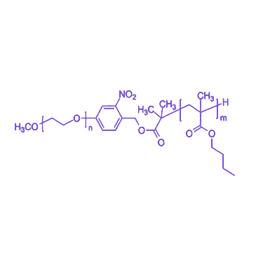 UV可裂解聚环氧乙烷-嵌段-聚(甲基丙烯酸正丁酯)(PEO-b-PnBMA)是一种集成生物相容性、两亲自组装特性与精准光响应能力的先进功能高分子材料,其核心优势在于通过非接触式紫外光照射实现材料结构与性能的时空可控调节。该聚合物采用活性聚合技术(如ATRP)合成,在嵌段连接处引入对紫外光敏感的化学键(如邻硝基苄基酯或香豆素酯键),使原本稳定的两亲结构可在特定波长紫外光触发下发生可控断裂,产品外观通常呈现白色至淡黄色固体形态。