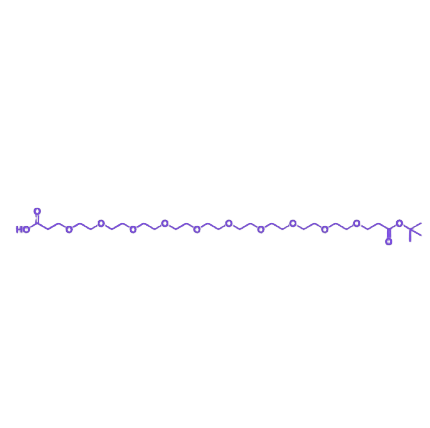 COOH-PEG10-COOtBu 是一种以“羧基(-COOH)-聚乙二醇10(PEG10)间隔臂-叔丁酯(-COOtBu)”为核心结构的双端功能化聚乙二醇衍生物,其核心价值在于双端基团的可控差异化修饰特性与PEG10间隔臂的高亲水性、低空间位阻及强生物相容性,可作为连接氨基/羟基分子与分步修饰体系的亲水缓冲型桥梁,广泛适配生物材料表面双功能化、药物分子PEG化修饰及纳米载体分层偶联等应用场景。 该化合物的羧基端可在偶联剂(如EDC/NHS)辅助下,直接与氨基(-NH₂)或羟基(-OH)发生酰胺化、酯化反应,且反应效率较高;叔丁酯端则需在酸性条件(如三氟乙酸)下脱保护生成羧基,脱保护效率可达>98%,这种特性可实现“先单端修饰、后双端活化”的分步调控,有效避免双羧基同时反应导致的交联团聚问题。 其聚乙二醇10间隔臂含10个氧乙烯单元,分子长度约33 Å,相比短链PEG,亲水性与空间缓冲能力显著提升,能减少修饰后分子的非特异性吸附,同时为生物大分子(如多肽、酶)提供充足构象自由度,避免活性位点被遮挡。与N3-PEG系列的点击化学特性不同,COOH-PEG10-COOtBu的核心优势在于双羧基的可控修饰,无需依赖炔基/叠氮体系,适配更广的非点击化学偶联场景,是兼顾亲水性能与修饰灵活性的关键工具。