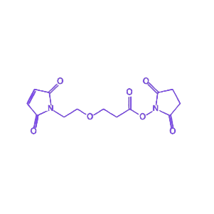Mal-PEG1-SPA(Maleimide-PEG1-Succinimidyl Propionate)是一种双端活化的聚乙二醇交联试剂,通过马来酰亚胺基团(-Mal)与活泼酯基团(SPA,NHS酯)的协同作用,实现含巯基(-SH)与伯胺(-NH₂)分子间的高效定向偶联,广泛应用于生物偶联、药物递送等领域。其短链PEG1结构兼具亲水性、柔性间隔及溶解性优势,同时避免长链PEG带来的空间位阻与偶联密度问题,是构建稳定高特异性生物偶联物的关键工具。 分子结构与活性基团特性:分子一端为马来酰亚胺基团(-Mal),可在温和条件下与巯基(-SH)高度选择性反应,形成稳定硫醚键;另一端为活泼酯基团(SPA,NHS酯),能与伯胺(-NH₂)发生酰胺键偶联。双活性端设计确保巯基-胺基分子的精准交联,反应效率高且产物稳定性优异。 PEG1间隔臂优势:含单个乙二醇重复单元的PEG1结构,在提供良好亲水性与生物相容性的同时,维持偶联产物的紧凑性,减少空间位阻对生物分子活性的影响。相较于长链PEG,短链设计显著提升偶联密度,尤其适用于对分子尺寸敏感的生物医学应用场景。 核心应用领域:主要用于蛋白质、抗体、肽类及小分子间的定向偶联,支持生物偶联物的高效制备;在药物递送系统中,可通过连接靶向分子与药物载体,优化药物靶向性与体内循环稳定性;同时适用于探针修饰及生物材料表面功能化,提升检测灵敏度与生物相容性。 产品核心价值:作为连接含巯基与胺基分子的“分子桥梁”,Mal-PEG1-SPA凭借高选择性反应、短链PEG的结构优势及良好生物相容性,为构建稳定、高特异性的生物偶联物提供可靠工具,推动生物医学研究及药物开发进程。