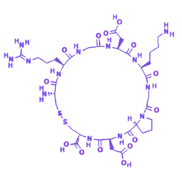NH2-PEG-iRGD 是一种兼具靶向功能与生物相容性的聚乙二醇衍生物,其分子结构由氨基修饰的聚乙二醇链段与 iRGD 环肽偶联而成,可作为多功能生物分子载体在生物医学领域发挥作用。 iRGD 作为靶向功能单元,是由 9 个氨基酸组成的八元环肽,具体序列为 CRGDKGPDC,该结构赋予分子特定的靶向识别能力。聚乙二醇(PEG)链段具有优异的生物相容性,其引入可显著提升 iRGD 多肽的水溶性和化学稳定性,同时有效降低其免疫原性,增强分子在生物体内的循环时间和生物利用度。分子末端的氨基(-NH2)作为关键活性反应位点,能够与羧基(-COOH)、N-羟基琥珀酰亚胺(NHS)等多种官能团发生化学反应,为 NH2-PEG-iRGD 与药物分子、纳米载体或生物材料的偶联修饰提供了灵活的化学基础,拓展了其在靶向药物递送、生物成像及组织工程等领域的应用潜力。