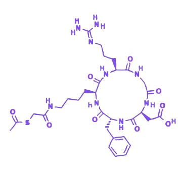 PLA-PEG-cRGDfk是一种具有三嵌段结构的靶向纳米材料,由聚乳酸(PLA)、聚乙二醇(PEG)和cRGDfk环肽组成,具备生物可降解性、生物相容性及靶向递送功能,可用于包载并缓释小分子药物、核酸类物质等生物活性成分。 聚乳酸(PLA)作为疏水性高分子链段,构成材料的核心结构,其源自可再生资源,具有优异的生物可降解性与生物相容性。该链段通过稳定包载机制实现对小分子药物、核酸类物质及其他生物活性成分的高效负载,并依托自身逐步水解特性,确保所载物质在生物体内的缓慢、持续释放,为长效治疗提供保障。 聚乙二醇(PEG)链段具有极强的亲水性,显著提升材料整体的水溶性和生物相容性。其作用类似于“隐形外衣”,能够有效降低免疫系统对纳米材料的识别与清除效率,延长材料在体内的循环时间,为药物的精准递送创造有利条件。 cRGDfk环肽作为靶向功能单元,可特异性地与整合素αvβ3受体产生高亲和力结合,发挥“导航仪”作用,使纳米材料能够定向富集于高表达整合素αvβ3的病变组织,从而提高药物递送的靶向性和治疗效果。