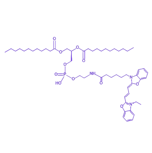 DOPE-CY2 是由二油酰磷脂酰乙醇胺(DOPE)与 CY2 荧光染料结合形成的功能性化合物,兼具磷脂载体的生物相容性与荧光探针的光学特性,广泛应用于生物医学研究中的荧光标记与可视化成像。 DOPE 作为天然磷脂成分,具有优异的生物相容性和细胞膜亲和力,在水溶液中可通过自组装形成 脂质体 结构,为 CY2 染料提供稳定的纳米级载体环境,有效保护其光学活性。CY2 荧光染料则具有特征性的光学参数,在 489nm 处呈现最大吸收峰,对应 506nm 波长的荧光发射,可产生明亮且光稳定性优异的荧光信号,确保长时间观测中信号强度不易衰减。 该化合物在细胞膜研究领域,可通过标记细胞膜组分,实现对细胞膜动态结构变化、细胞融合过程及跨膜物质转运机制的实时荧光成像分析。在脂质体相关研究中,DOPE-CY2 标记的脂质体可用于追踪其在生物体内外的分布规律、代谢途径及与靶细胞的相互作用模式。在药物传递系统开发中,通过将 DOPE-CY2 修饰于纳米颗粒、脂质体等药物载体表面,能够直观监测载体的体内循环路径、组织靶向分布及细胞内吞效率,为阐明药物递送机制、优化载体设计提供可视化研究手段,助力新型药物递送系统的研发与性能提升。