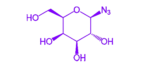 1-叠氮-1-脱氧-β-D-半乳糖苷是一种具备化学选择性的糖基叠氮化物,其核心价值在于通过糖苷键的位点特异性修饰,为复杂碳水化合物合成提供兼具正交反应性与立体化学可控性的关键结构单元,在糖化学与化学生物学研究领域具有重要应用价值。 该化合物通常呈现为白色至类白色结晶性粉末,溶解行为与其分子结构中含有的多个羟基形成氢键网络及叠氮基团的偶极特性密切相关,在极性有机溶剂如二甲基亚砜(DMSO)和N,N-二甲基甲酰胺(DMF)中具有良好溶解性,而在低极性溶剂中溶解度较低。其核磁共振氢谱(¹H NMR)在δ 4.5-5.0 ppm区间通常出现端基氢信号,可作为β-构型糖苷键的特征鉴别依据,红外光谱在2100 cm⁻¹左右的强吸收峰则对应叠氮基团的不对称伸缩振动。 在前沿科研领域,该试剂广泛应用于糖化学与化学生物学研究,尤其在点击化学(Click Chemistry)介导的糖探针构建中发挥关键作用。分子结构中的叠氮基团可与炔基化合物在铜催化下发生高效1,3-偶极环加成反应,实现荧光染料、生物大分子或药物分子的位点特异性糖基化修饰,其β-半乳糖苷构型则确保了修饰产物在生物体系中能够被特定糖结合蛋白(如半乳糖凝集素)识别,从而为研究细胞表面糖基化动态过程及开发糖基化靶向药物提供了精准的分子工具。