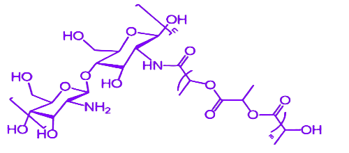 Chitosan-PLA(壳聚糖-聚乳酸)是一种通过共价或物理共混形成的天然-合成杂化高分子体系,其核心价值在于整合壳聚糖的生物黏附性、抗菌活性与聚乳酸的机械强度及可控降解特性,构建兼具生物功能性与结构稳定性的先进生物医用材料平台。该材料通过协同作用解决了单一天然高分子力学性能不足或合成高分子生物活性匮乏的固有矛盾,在组织工程与药物递送等领域展现出重要应用潜力。 壳聚糖分子链上的游离氨基与羟基赋予其pH响应性和生物识别能力,聚乳酸的酯键结构则提供可调节的水解速率。二者的复合使其物化性质与微观结构紧密关联:溶剂兼容性方面,通常可溶于六氟异丙醇等氟化溶剂或含少量乙酸的稀水溶液,具体溶解度取决于壳聚糖脱乙酰度(典型范围70%-95%)与聚乳酸链段分子量(常用数均分子量5-50 kDa)的匹配度。热性能上,其玻璃化转变温度(Tg)呈现双相特征,分别对应壳聚糖链段(约50-70℃)与聚乳酸链段(约55-65℃)的运动转变,熔融温度(Tm)主要由聚乳酸结晶相贡献(150-180℃),且随共混比例提高呈现线性变化。光谱学特征表现为FTIR光谱中1650 cm⁻¹(壳聚糖酰胺I带)与1750 cm⁻¹(聚乳酸酯基)的特征吸收峰强度比可用于定量组分比例,¹H NMR谱中δ 1.56 ppm(聚乳酸甲基质子)与δ 2.8-3.2 ppm(壳聚糖氨基质子)的积分面积比可精确表征共聚物组成,为材料的可设计性提供分子层面的调控依据。 在前沿科研应用中,Chitosan-PLA复合材料已成为组织工程与药物递送领域的关键载体。在骨组织工程支架构建中,通过静电纺丝技术制备的纳米纤维膜利用壳聚糖的成骨细胞黏附促进作用与聚乳酸的结构支撑功能,实现细胞增殖与组织再生的协同调控,其作用机制涉及壳聚糖氨基与细胞表面整合素的特异性相互作用,以及材料降解过程中缓释的乳酸对局部微环境pH的动态调节。在抗肿瘤药物递送系统中,该材料通过pH敏感的电荷反转特性(酸性肿瘤微环境下从负电变为正电)增强细胞内吞效率,同时利用聚乳酸的酶促降解特性实现药物的脉冲式释放。近期研究表明其对阿霉素的包封率可达85%以上,且体外释放呈现明显的双相动力学特征,初始突释阶段(24 h释放30%-40%)后进入持续缓释期(7天累计释放率超80%)。
