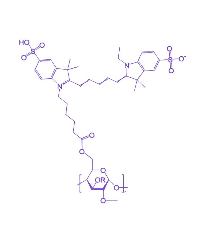 CY5-MβCD 是一种融合荧光标记技术与环糊精特性的功能性复合物,通过将近红外荧光染料 CY5 标记于甲基 - β - 环糊精(MβCD)分子结构,实现了包合负载能力与荧光示踪功能的协同整合。该复合物既保留 MβCD 的疏水空腔结构,可包合疏水性客体分子以完成化合物递送,又借助 CY5 的近红外荧光信号(发射波长位于近红外区域),满足生物体内外环境中实时追踪与检测的需求,在药物载体示踪、生物分子互作研究等领域具有重要应用潜力。 其核心化学性质体现在两个方面:一是包合作用,MβCD 的环状疏水空腔能够选择性包合疏水性分子形成稳定包合物,CY5-MβCD 继承该特性后,可用于包载药物、生物活性分子等客体,实现增溶、稳定性提升及靶向递送;二是反应活性,CY5 分子结构中含有的氨基、羧基等可反应官能团,能通过酰胺化、酯化等化学反应与其他功能分子偶联,进一步实现靶向配体修饰或生物分子连接,拓展复合物的功能化应用范围。