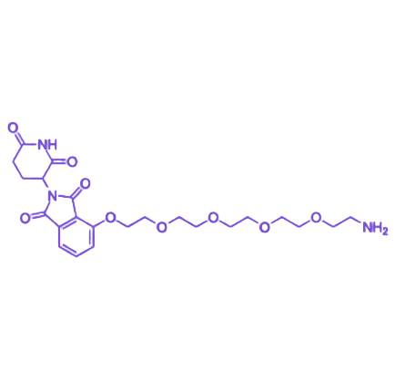 Thalidomide-O-PEG4-NH2 是沙利度胺的功能化衍生物,通过引入四聚乙二醇(PEG4)作为亲水性连接臂并修饰末端氨基(NH2)活性位点,优化了分子特性与反应性能,适用于药物递送、分子探针合成及功能纳米材料表面修饰等生物偶联应用场景。 沙利度胺核心母核结构得以保留,确保了分子的化学稳定性及生物学特性,为其在生物体系中的应用奠定基础。O-PEG4 连接方式不仅赋予分子良好的空间柔性与水溶性,有效降低生物体系中的非特异性吸附,还通过提供灵活的空间间隔减少化学修饰时的立体位阻,提升偶联反应效率。末端氨基作为高度活泼的功能基团,可与羧基、活化酯、异氰酸酯等多种官能团发生特异性共价反应,为构建稳定的生物偶联体系提供便利条件。 该衍生物凭借优异的水溶性与化学反应活性,能够适应水相条件下的多种生物偶联需求,在药物递送系统中可实现药物分子的精准修饰与靶向递送,在分子探针合成中有助于提高探针的生物相容性与检测灵敏度,在功能纳米材料表面修饰领域则可赋予材料特定的生物活性与功能化特性,展现出广泛的应用潜力。