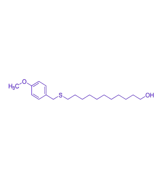 在理化性质方面,11-((4-Methoxybenzyl)thio)undecanol 对热与中性条件较稳定,在多种有机溶剂中化学稳定性良好;硫醚部分对强氧化剂敏感,羟基在碱性条件下易发生转化,因此建议在干燥、避光、低湿环境中储存。合成过程中的关键步骤包括硫醇的芳基化、与卤代烷的烷基化反应,以及末端羟基的保护与脱保护。凭借其结构柔性调节能力,该分子常作为新型高分子单体或界面调控分子,成为精细化学品领域的重要中间体。