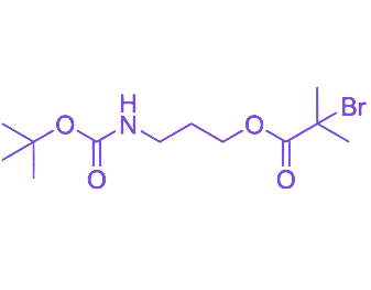 3-(Boc-amino)propyl 2-bromo-2-methylpropanoate(简称Boc-APMA-Br)是一种兼具Boc保护氨基与α-溴代异丁酸酯双功能结构的ATRP引发剂,其分子设计中引入的丙基间隔链赋予化合物优异的结构柔性与空间调节能力,可在保持高效引发活性的同时,为聚合物链末端功能化提供精准调控基础。 该化合物的核心优势在于Boc保护基的化学稳定性,在原子转移自由基聚合(ATRP)过程中可耐受聚合条件而不发生分解,待聚合完成后通过酸性条件处理即可高效脱除保护基,释放出具有反应活性的游离氨基。此活性位点可进一步参与点击化学反应、生物分子偶联或功能基团修饰,实现聚合物材料的多样化功能拓展。 作为结构可控聚合的关键工具,Boc-APMA-Br适用于甲基丙烯酸酯、苯乙烯等多种单体体系,可精准合成末端氨基功能化的嵌段共聚物、接枝聚合物及星型聚合物等复杂拓扑结构材料,在生物医用材料表面改性、智能响应型高分子载体及精密功能高分子合成领域具有重要应用价值。