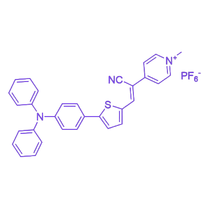 TT-Py是一种基于噻吩并噻吩(TT)电子供体与吡啶基(Py)电子受体兼靶向基团构建的D-π-A型分子,其核心优势在于实现了“靶向聚集-光动力活性”的协同作用,同时具备优异的光学性能、生物相容性及稳定性,适用于生物成像与精准光动力治疗场景。 吡啶基作为靶向基团,可与特定生物靶点特异性结合,引导分子在靶点区域实现选择性聚集;噻吩并噻吩的刚性共轭骨架能有效抑制分子过度团聚,使聚集态荧光量子产率高于单分散态,且发射峰聚焦于红光波段,可显著减少生物组织自吸收干扰,适配活体成像需求。噻吩并噻吩的富电子共轭体系赋予分子Max吸收峰处于可见光中长波段,且摩尔吸光系数较高,确保对激发光的高效捕获;其三线态量子产率处于较高水平,在匹配激光激发条件下能高效生成单线态氧(¹O₂),且¹O₂占比高,羟基自由基等非特异性活性氧(ROS)生成少,可实现对靶细胞的精准作用,降低对正常组织的光毒性(DT)。 吡啶基的极性特征增强了分子与水相的相容性,经简单表面修饰即可形成稳定纳米制剂;在生理pH范围内,噻吩并噻吩与吡啶基结构无明显降解,能持续保持稳定的光学性能与光动力活性,无需复杂储存条件,为实际应用提供便利。