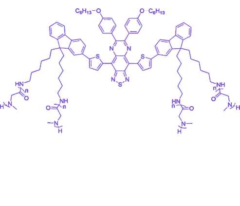 TTQ-PSar 是一款水溶性近红外二区(NIR-II,1000-1700 nm)聚合物染料,通过分子结构设计实现 efficient 光学性能、良好生物相容性与 多功能集成 的协同优化,其以 TTQ 共轭体系为光学核心,化学键合聚肌氨酸(PSar)柔性侧链,凭借 NIR-II 成像优势与聚肌氨酸的“隐形”特性,成为生物医学准确诊疗领域的前沿工具。