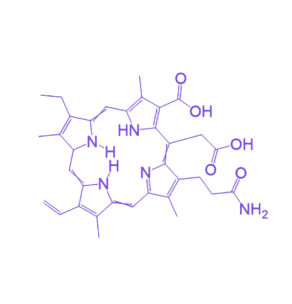 作为光敏剂,Ce6-NH2继承了二氢卟吩e6的高光敏活性,在特定波长光照激发下可产生单线态氧,通过诱导肿瘤细胞等目标细胞的消除,在光动力治疗中展现出潜在应用前景。另一方面,氨基官能团的引入使其成为理想的生物偶联载体,可与含羧基或活性酯的生物分子、纳米材料等进行共价连接,实现对靶向分子的精准修饰与标记。这种双重功能使其在生物成像、药物传递系统构建等方向发挥关键作用,有助于提升化合物的靶向性和治疗效果,为生物医学研究提供高效工具。