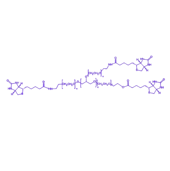 在实际应用中,该衍生物可通过末端生物素基团实现对抗体、酶等生物分子的精准标记,在免疫分析中借助生物素-亲和素信号放大系统显著提升检测灵敏度;在蛋白质纯化领域,其多臂结构可增加配基密度,提高分离效率;在靶向治疗研究中,通过与特异性配体偶联,能够实现药物在病灶部位的富集,为疾病诊断与治疗提供创新解决方案。