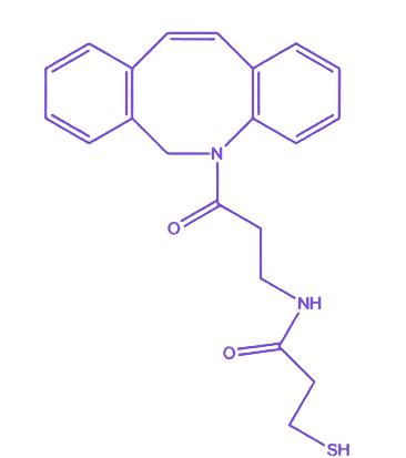 DBCO-SH是一种具有双官能团结构的有机化合物,其分子结构中同时包含二苯并环辛炔(DBCO)基团和巯基(-SH)官能团,在生物偶联化学及材料表面改性领域具有重要应用价值。
