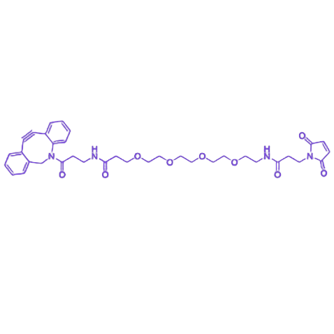 DBCO-NH-PEG4-NH-Mal是一种双功能交联剂,其分子结构包含应变炔环结构的DBCO、柔性PEG₄连接链及末端Maleimide反应基团,通过两个氨基连接点(–NH–)实现结构稳定与可调性,可在温和条件下定向偶联两种生物分子,广泛应用于生物医学研究领域。