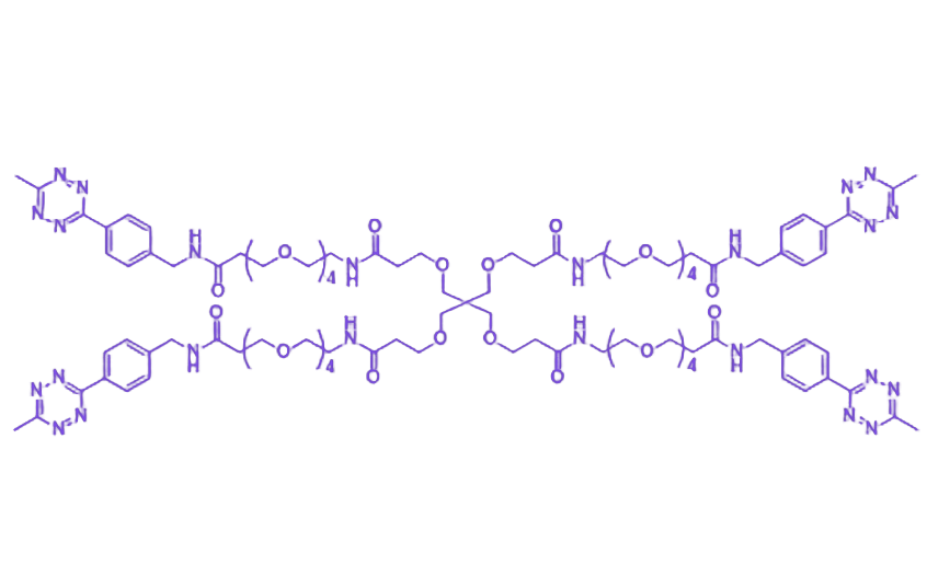 分子结构由两个反应基团与间隔臂组成:四嗪和甲基四嗪作为反应位点,其中甲基四嗪对TCO的反应速率显著高于普通四嗪;PEG4链段作为亲水间隔臂,既提升整体分子水溶性,又为双反应基团提供必要的空间位阻分离,避免相互干扰。