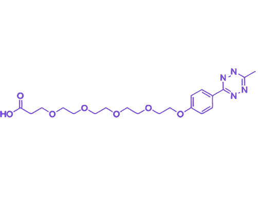 Methyltetrazine-PEG4-acid 是一种兼具生物正交反应活性与化学修饰功能的多功能试剂,其分子结构由甲基四嗪基团、PEG4链段和羧基构成,适用于生物分子标记、药物递送系统构建及生物材料功能化等前沿研究领域。 甲基四嗪基团作为核心反应单元,相较于普通四嗪衍生物具有更高的生物正交反应活性,可在无催化剂条件下与反式环辛烯(TCO)在生理环境中快速发生点击化学反应,该特性使其特别适用于活体成像、细胞内动态过程追踪等对反应速率和生物相容性要求严苛的场景。 PEG4链段的引入显著提升了分子的亲水性,同时通过空间位阻效应减少非特异性蛋白质吸附,降低免疫原性,延长偶联物在体内的循环半衰期,为构建长效生物制剂或靶向递送系统提供优化基础。 羧基官能团为分子提供了多样化的化学修饰途径,可通过N-羟基琥珀酰亚胺(NHS)活化或碳二亚胺(EDC)介导的缩合反应,与含氨基、羟基的生物分子(如抗体、多肽、酶)或纳米载体共价偶联,广泛应用于抗体-药物偶联物(ADC)、靶向探针及功能化生物材料的制备。 该试剂在低温干燥、避光条件下可保持稳定的化学性质,其结构设计的协同性使其在精准医疗、化学生物学及先进材料领域展现出重要应用潜力,为开发新一代生物活性分子和治疗策略提供关键工具。