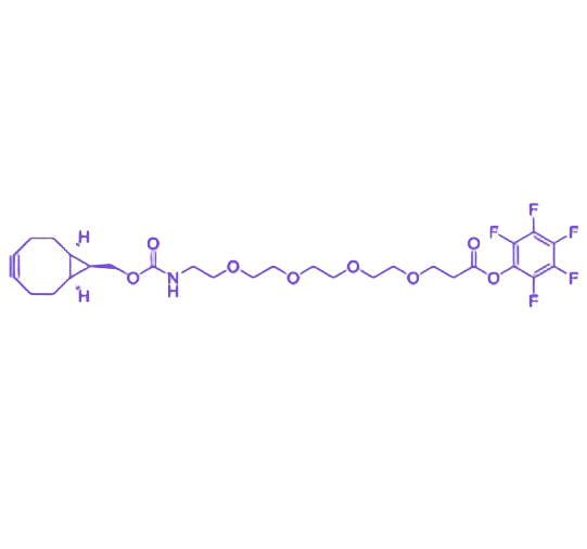 储存与使用方面,该化合物对湿气和光敏感,需在-20°C 干燥避光环境中长期保存,避免反复冻融。PFP 酯端易水解,使用前需用无水 DMSO 或 DMF 新鲜溶解,并立即加入反应体系;BCN 环炔部分在常规反应条件下化学稳定性较高,但需避免强氧化或高温环境。通过严格控制储存条件与反应参数,可充分发挥其高反应性与选择性,满足生物医学研究及药物开发中的精密偶联需求。