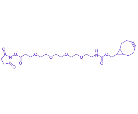 < strong >环丙烷环辛炔(BCN)基团< /strong >具备无铜点击化学特性,无需铜催化剂即可与叠氮基在温和条件下发生快速、特异性环加成反应,有效降低金属离子对生物样本的潜在干扰,特别适用于复杂生物体系中生物分子的标记与追踪。< strong >四聚乙二醇(PEG4)链段< /strong >赋予分子良好的亲水性与柔韧性,能够减少非特异性吸附,提升生物相容性,并延长分子在体内的循环时间。< strong >N-羟基琥珀酰亚胺酯(NHS 酯)部分< /strong >反应活性高,在中性或弱碱性环境中可迅速与蛋白质、多肽、抗体等含氨基生物分子反应,通过形成稳定的酰胺键完成生物分子偶联。该试剂化学性质稳定,需在低温干燥条件下储存,便于长期保存与使用。