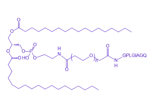 DSPE-PEG-GPLGIAGQ 是一种兼具结构稳定性与靶向响应功能的多功能化合物,通过DSPE疏水磷脂、PEG亲水性链段及GPLGIAGQ酶响应多肽的有序组装,实现药物载体的高效构建与智能递送。