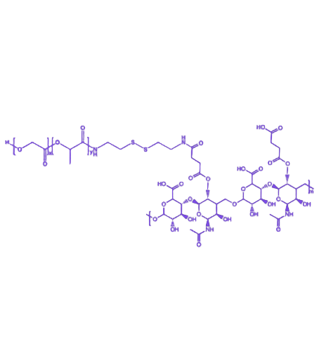 PLGA-SS-HA是通过化学交联将天然多糖透明质酸(HA)与可降解聚酯PLGA通过二硫键(-SS-)连接形成的功能化复合生物材料,兼具生物相容性、药物负载能力与响应性释放特性,其性能可通过分子设计实现多维度调控。