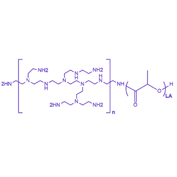 PDLLA-PEI 是一种兼具生物可降解性与生物相容性的新型共聚物,由聚 D,L-丙交酯(PDLLA)与聚乙烯亚胺(PEI)通过化学结合形成,在常规条件下呈固体形态。其分子结构同时保留了 PDLLA 的生物可降解特性与 PEI 的高反应活性及阳离子特性,为生物医学领域的递送系统提供了多功能载体解决方案。 该共聚物的核心组分为 PDLLA 与 PEI:PDLLA 作为生物可降解骨架,在体内可逐步降解为乳酸,具有良好的生物相容性;PEI 则贡献了强阳离子特性与高反应活性,能够通过静电相互作用与生物分子发生特异性结合。这种组分协同作用使共聚物在保持固体形态稳定性的同时,具备了动态生物功能。 在生物应用中,PDLLA-PEI 展现出双重递送优势。作为 基因载体,其阳离子特性可与带负电的核酸高效结合,形成稳定的复合物结构,实现基因片段的靶向传递与细胞内释放;作为 化合物递送系统,其分子结构可包裹疏水性化合物,显著提升客体分子的溶解性与储存稳定性,同时通过与细胞膜的静电相互作用促进细胞摄取效率,拓展了难溶性药物的生物利用途径。