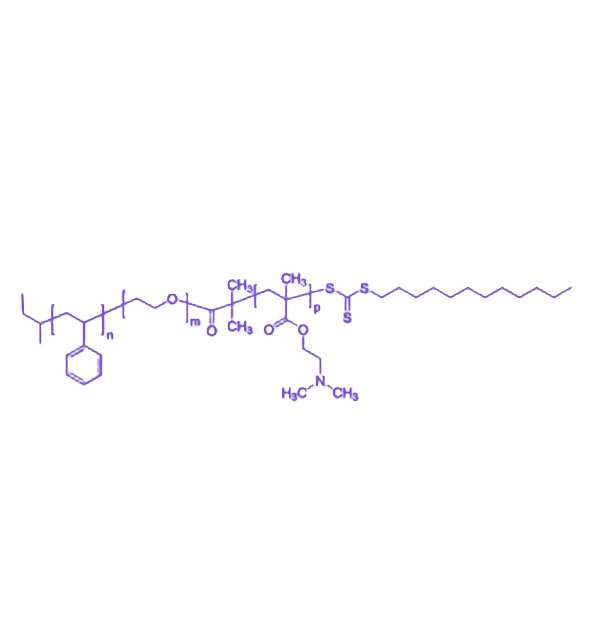 在水溶液或选择性溶剂中,PS-b-PEO-b-PDMAEMA 可自组装形成多样化的纳米结构,包括核-壳-冠胶束、蠕虫状聚集体、囊泡及层状薄膜等。其中,PS 构成核心,PEO 形成稳定外壳层,PDMAEMA 则在最外层构建可调电荷的界面区域,这种层级结构确保了材料的多功能协同性。通过调节三段的分子量比例与链段长度,可实现从胶束稳定剂到核酸传递载体的宽领域应用,例如利用 PS 段负载疏水分子或结合纳米材料表面,PEO 层提供长循环稳定性与生物相容性,PDMAEMA 段通过 pH 响应特性调控药物或核酸的释放行为。此外,该材料还可在固体表面形成多层界面膜,有效提升表面亲水性、电荷调控能力及抗污染性能,在乳液稳定、表界面改性及 pH 响应智能材料等领域具有重要应用价值。