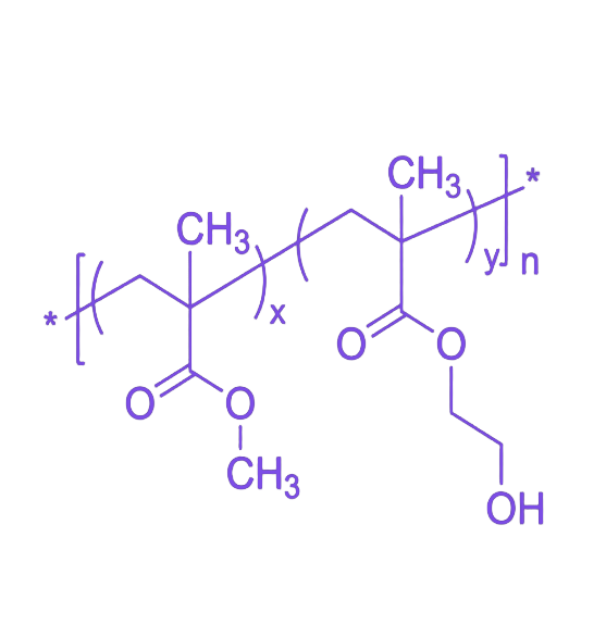 该共聚物的合成基于MMA与HEMA良好的反应活性匹配,通过控制进料配比可精准调控共聚物组成,进而实现对玻璃化温度、溶胀性能及亲水程度的灵活调节。结构上同时包含疏水酯基链段与亲水羟基侧链,使其兼具可调节的水吸收能力和良好的界面粘附特性。
