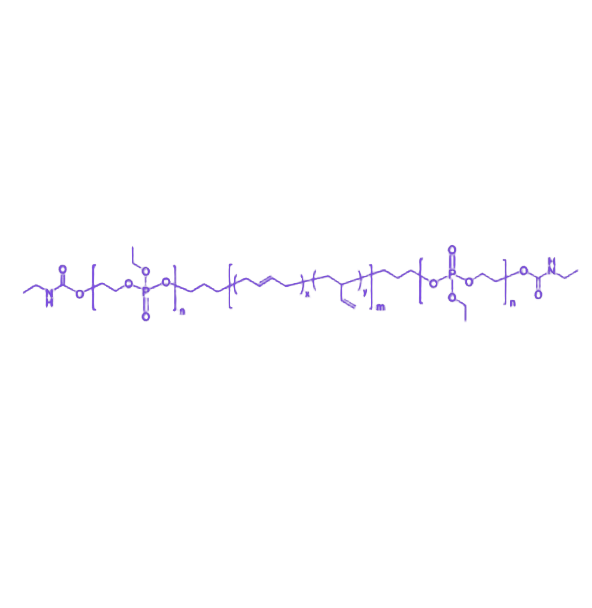 PPE-b-PB-b-PPE(Poly(phenylene oxide)-b-polybutadiene-b-poly(phenylene oxide))是一种对称型 ABA 三嵌段共聚物,其分子结构由柔性橡胶状的 PB(polybutadiene)中间段与两侧刚性耐热的 PPE(poly(phenylene oxide))链段构成,并通过 α,ω-bis(urethane) 端基修饰实现功能化设计。该材料结合了软硬链段的协同作用与端基反应活性,在微观相分离结构调控、力学性能平衡及化学可修饰性方面表现突出,适用于高端结构材料与功能涂层等领域。
