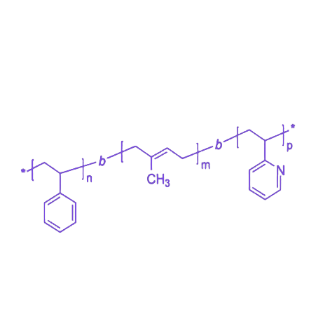 PS-b-PI-b-P2VP 是由聚苯乙烯(PS)、聚异戊二烯(PI)与聚 2-乙烯吡啶(P2VP)构成的三嵌段共聚物,其“刚性–柔性–极性”的结构组合赋予材料 微相分离行为 与 界面调控能力,具备高度结构可设计性和多功能化潜力,在科研与应用领域具有较高价值。