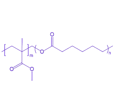 PMMA-PCL 是通过化学合成方法制备的聚甲基丙烯酸甲酯(PMMA)与聚己内酯(PCL)嵌段或接枝共聚物,其设计理念在于融合两种聚合物的核心优势,通过精准调控组分比例与链段结构实现材料性能的定制化。