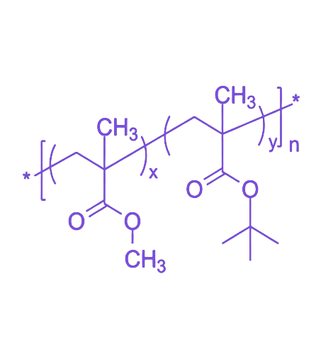 P(MMA-co-tBMA) 是由甲基丙烯酸甲酯(MMA)与叔丁基丙烯酸甲酯(tBMA)通过自由基共聚形成的随机共聚物,其核心特性在于通过两种单体链段的协同作用,实现材料硬度、透明性与柔韧性的精准平衡,广泛适用于涂料、胶黏剂及功能膜等领域。