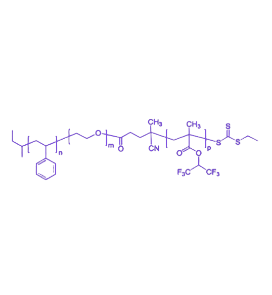 PS-b-PEO-b-PHFIPMA 是由聚苯乙烯(PS)、聚乙二醇(PEO)与三氟异丙基甲基丙烯酸酯(PHFIPMA)构成的三嵌段共聚物,其核心优势在于整合了刚性、柔性与低表面能三重特性,具备高度的结构可控性、化学稳定性及纳米自组装能力,在纳米材料构筑、表界面工程、抗污涂层等领域展现出显著应用潜力。