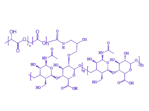 透明质酸-聚乳酸-羟基乙酸共聚物(HA-PLGA)是一种创新性生物可降解复合材料,通过将天然多糖透明质酸(HA)与生物可降解共聚物聚乳酸-羟基乙酸共聚物(PLGA)进行复合制备而成,兼具两者核心优势,在生物医学领域展现出重要应用价值。 透明质酸(HA)作为人体结缔组织固有的天然多糖,具有优异的生物相容性与保湿特性,为复合材料提供了良好的靶向性能,尤其在肿瘤治疗与组织修复场景中可发挥精准靶向效应;聚乳酸-羟基乙酸共聚物(PLGA)由乳酸和羟基乙酸单体聚合形成,具备可靠的生物可降解性,能够实现药物在体内的时效释放,保障治疗效果的可控性与持久性。 通过精准调节PLGA组分中乳酸与羟基乙酸的摩尔比例,可实现对复合材料降解速率的有效调控,从而满足药物递送、组织工程及医学植入物等不同应用场景的个性化需求,为生物医学材料的多功能化与智能化发展提供了新的解决方案。