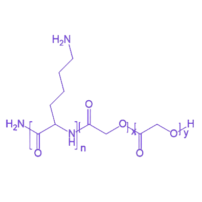 PLGA-PLL 是一类通过共价结合将聚乳酸-羟基乙酸共聚物(PLGA)与聚赖氨酸(PLL)整合的新型生物医用复合材料,其设计理念在于协同发挥两种聚合物的核心优势,为生物分子递送及控释领域提供高性能解决方案。 PLGA 作为复合材料的基质成分,赋予材料优异的 生物可降解性 与 生物相容性。在生理环境中,PLGA 可通过酯键水解逐步降解为乳酸和羟基乙酸,这些降解产物能通过三羧酸循环被机体自然代谢,最终以二氧化碳和水的形式排出体外,有效避免了长期植入可能引发的异物蓄积风险,确保了材料应用的生物安全性。 PLL 片段则通过侧链氨基提供高密度的 阳离子电荷,该特性使其能与带负电荷的生物大分子(如 DNA、RNA、生长因子等)通过静电相互作用形成稳定的复合物,显著提升了生物活性物质的负载效率与结构保护能力。这种靶向结合机制为核酸递送、蛋白质控释等生物医学应用奠定了关键物质基础。 通过 PLGA 与 PLL 的功能整合,该复合材料既保留了 PLGA 基质的 缓释特性,可通过调节聚合物分子量与共聚比例实现药物或生物分子的程序化释放;又借助 PLL 的阳离子特性实现了对生物分子的高效捕获与定向递送,从而在肿瘤治疗、基因编辑、组织工程等前沿领域展现出广阔的应用前景。