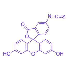 FITC 作为荧光报告基团,具有明确的光学特性:在约 490 nm 蓝光激发下,可发射波长约 525 nm 的明亮绿色荧光,且光稳定性良好、标记效率高,能够通过荧光显微镜、流式细胞仪等常规设备实现高灵敏度检测与定量分析。