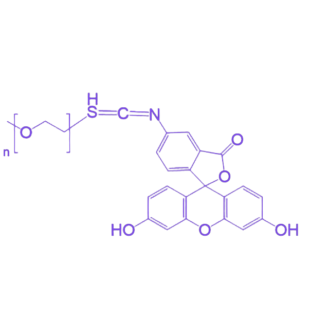 mPEG-FITC(甲氧基聚乙二醇-异硫氰酸荧光素)是一种兼具优良水溶性、生物相容性与荧光标记功能的复合型试剂,由甲氧基聚乙二醇(mPEG)异硫氰酸荧光素(FITC)共价结合而成。其分子结构中,mPEG片段提供良好的亲水性和生物安全性,FITC基团则赋予试剂强烈的绿色荧光发射特性,可满足高灵敏度的荧光检测需求,在生物医学研究领域具有广泛应用价值。