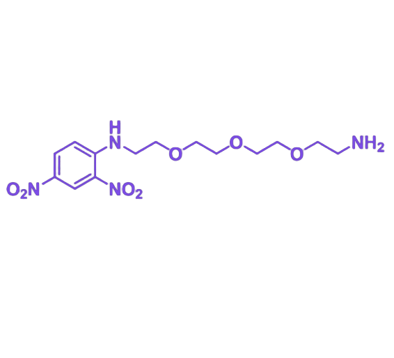 该化合物的关键结构单元赋予其多重特性:DNP基团作为人工半抗原,可被特定抗DNP抗体高效识别并结合,为后续检测或靶向递送提供分子基础;PEG3间隔臂具有良好的水溶性,能有效降低修饰后分子的免疫原性,同时其柔性结构可减少生物偶联过程中的空间位阻,提高反应效率;末端的伯氨基(-NH2)在适宜反应条件下,可与NHS酯等多种活化基团发生共价连接,形成稳定的酰胺键或其他化学键合结构,确保修饰过程的可控性和修饰产物的结构稳定性。