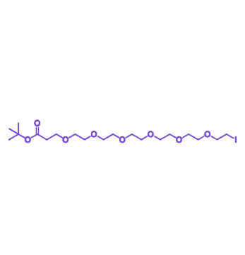 COOtBu-PEG6-I 是一款为复杂生物分子工程与高级药物递送系统构建优化的功能化连接子,其分子结构包含叔丁氧羰基(Boc)、聚乙二醇6(PEG6)链段和碘原子三个核心功能单元,通过协同作用实现高效的分子偶联与纳米结构调控。