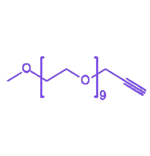 mPEG9-Alkyne(甲氧基九聚乙二醇炔基)是一种具有明确分子结构的聚乙二醇衍生物,其分子两端分别为稳定的甲氧基(-OCH₃)和高活性的炔基(-C≡CH),中间通过9个乙二醇单元构成的聚乙二醇链连接。该化合物兼具聚乙二醇链的水溶性、生物相容性与炔基的化学反应活性,在材料科学、生物医学等领域具有广泛应用潜力。