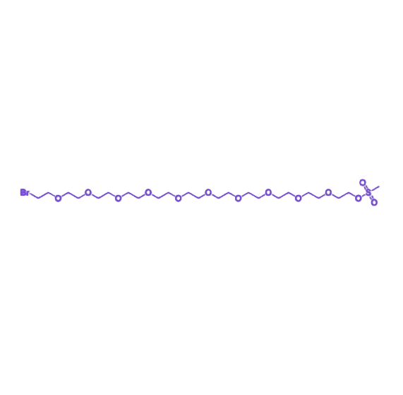 Br-PEG11-Ms(中文名称:溴基-十一聚乙二醇-甲磺酸酯,英文通用名:Bromo-PEG11-Mesylate)是一种高纯度(≥95% HPLC)的十一聚乙二醇类双功能衍生物,作为有机合成、高端药物研发与生物医学材料领域的关键中间体,其分子结构包含高活性离去基团(溴代基团与甲磺酰基)及十一聚PEG链段,可分步参与亲核取代反应并引入长柔性醚键连接臂,适用于构建中长链醚键分子体系。