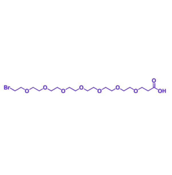 Br-PEG7-acid 是一种双功能聚乙二醇衍生物,其分子结构包含约七个乙二醇重复单元构成的 PEG 主链,两端分别修饰溴基与羧酸基。该化合物凭借适中的链长、双端反应活性及优异的水溶性,在分子设计与材料修饰领域展现出平台型应用价值。 PEG7 链段由七个乙二醇单元组成,较 PEG6 具有更高的柔性与空间隔离性,可减少分子间立体阻碍并提升亲核试剂可及性,同时保持良好的水溶性与分子扩展性,能在水相或有机相体系中稳定存在。 溴基端具有良好的离去能力,可在温和条件下参与 SN2 反应,在有机或生物兼容环境中高效转化为氨基、巯基、炔基或叠氮基等功能团,为后续衍生化提供多样化路径。羧酸端则可通过 EDC/NHS、DCC 或 HATU 等活化试剂,与胺类、羟基类化合物形成稳定共价键,实现与生物分子、纳米材料或小分子配体的偶联。 在材料科学领域,该化合物可用于纳米粒表面修饰,通过 PEG7 链段形成较厚亲水层,提升纳米颗粒的水分散性与稳定性并减少蛋白吸附;同时可作为 ATRP 引发剂构建聚合物刷,或用于制备多功能响应材料。在生物化学与分析化学中,羧酸端可直接偶联蛋白、肽或核酸,溴端经转化后可引入荧光标记或点击化学基团,广泛应用于探针设计、靶向药物载体及功能化聚合物构建。双端活性与链长优势支持多步合成与模块化设计,使其成为多功能化合物开发的理想选择。