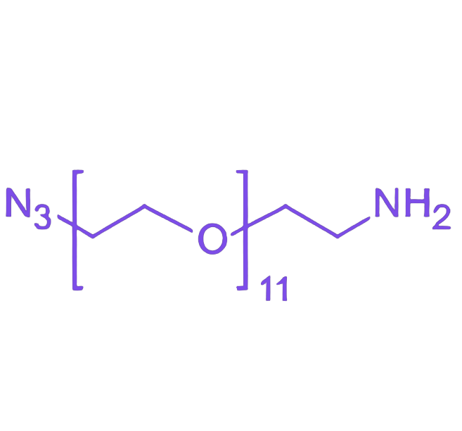 中间的 PEG11 链段赋予分子良好的亲水性和柔韧性,同时通过较大的空间位阻效应,有效降低偶联后生物分子的免疫原性,减少非特异性吸附,延长其在体内的循环时间。这种独特的结构设计使 N3-PEG11-NH2 成为构建靶向药物递送系统、制备生物相容性材料表面涂层及开发新型生物偶联试剂的关键组件,广泛应用于抗体药物偶联物(ADC)研发、纳米载药系统构建及生物传感器表面功能化等前沿领域。