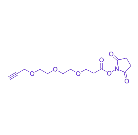 该衍生物具有良好的水溶性和有机相兼容性,可在水相、DMSO、DMF 或乙腈等溶剂中稳定分散,适用于生物相容性体系的温和反应条件。在生物医学领域,常用于 蛋白质/肽修饰、抗体功能化及纳米药物载体表面改性:通过 NHS 酯端与生物分子胺基偶联,炔基端可进一步点击标记荧光探针、靶向配体或药物分子,构建双功能化生物偶联物。典型应用包括荧光成像探针制备、靶向药物递送系统构建及生物分子相互作用研究。