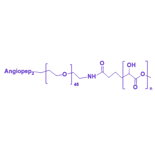 Angiopep2-PEG45-PLA 是一种由 Angiopep-2 肽、 PEG45 (分子量为 45 的聚乙二醇片段)与聚乳酸(PLA)共价偶联形成的靶向递送系统,其核心功能在于实现药物向中枢神经系统(CNS)的高效递送。该化合物通过多组分协同作用,在跨越血脑屏障(BBB)、提升生物相容性及延长循环时间等方面展现出显著优势。
