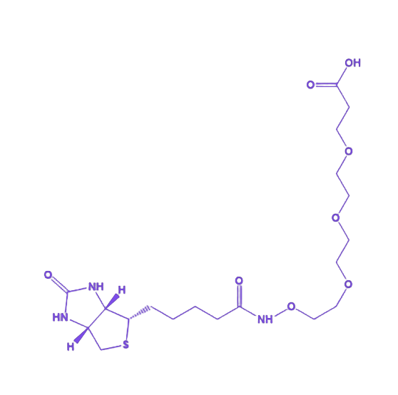 该试剂的核心结构特征赋予其多重功能优势:生物素部分可与链霉亲和素等抗生物素蛋白发生高亲和力特异性结合,为生物分子的检测与分离提供分子识别基础;PEG4链段通过增强分子亲水性与柔性,有效提升试剂在水溶液中的溶解性和稳定性,同时减少非特异性相互作用;Dde保护基在水合肼等温和条件下可发生选择性裂解,实现生物素基团的可控释放,提升实验设计的灵活性;末端羧基则可通过酰胺化等化学反应与含氨基的目标分子共价偶联,完成对蛋白质等生物分子的精准标记。