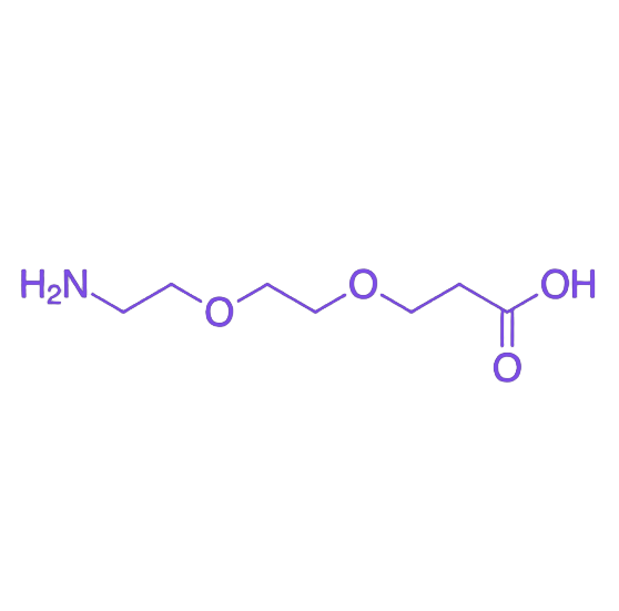 NH2-PEG2-COOH 是一种异双功能聚乙二醇衍生物,其分子结构由两单元 PEG(PEG2)链连接一端伯胺(–NH₂)与另一端羧基(–COOH)构成,具备双端独立修饰与功能化的特性,适用于蛋白质、纳米颗粒及小分子药物的表面改性。 分子结构与反应特性 该化合物通过 PEG2 短链实现两端功能基团的空间隔离,既保证 伯胺端 与羧酸、NHS 酯等亲电官能团的高效酰胺键形成,又允许 羧基端 经 EDC/NHS 活化后与胺基、羟基等亲核分子偶联。PEG2 链的适度柔性提升反应位点在空间受限体系中的可及性,同时增强修饰产物的水溶性与生物相容性,减少非特异性吸附。 应用场景 广泛用于蛋白质标记、抗体功能化、多肽修饰及纳米颗粒表面改性,可作为多功能分子桥接工具构建药物载体系统。其高反应选择性与稳定性确保修饰产物的均一性,尤其适用于对空间位阻敏感的生物分子偶联场景。 储存与操作建议 需在–20°C 干燥避光条件下密封保存,防止胺端氧化及羧基污染。使用前可溶于无水 DMSO、DMF 或缓冲溶液,建议在惰性气氛下操作以维持官能团活性,避免长时间水解或暴露于强氧化环境。